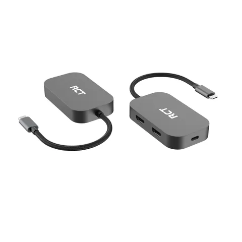 RCT 3-in-1 USB Type C Adaptor with dual HDMI; USB Type C Power Pass Through and Multi-Steam Transport technology read more ↓ read less ↑