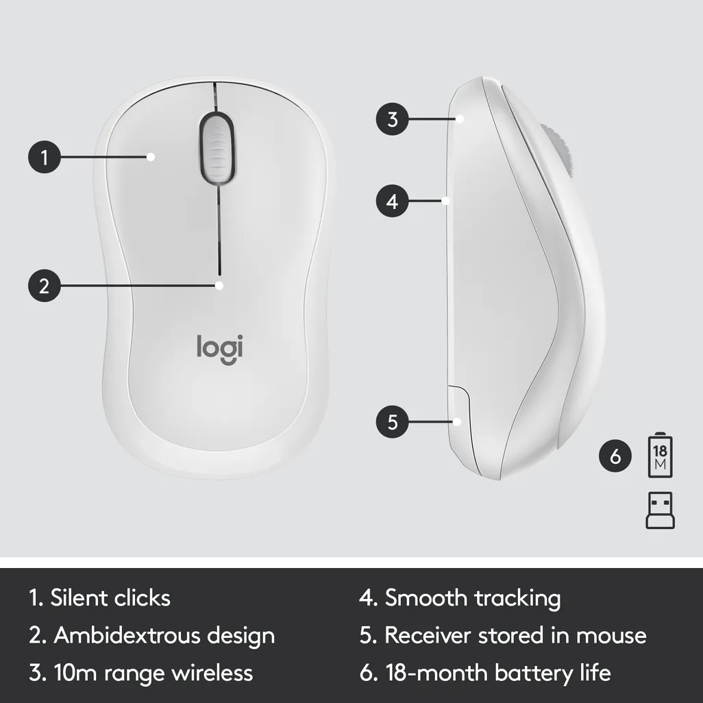 SKU: 920-009824Logitech MK295 Silent Wireless Combo, Full-size (100%), Wireless, RF Wireless, QWERTY, White, Mouse included read more ↓ read less ↑