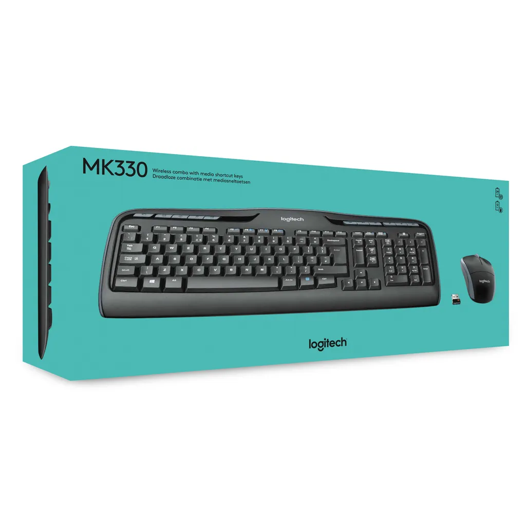 Logitech Wireless Combo MK330. Keyboard form factor: Full-size (100%). Keyboard style: Straight. Connectivity technology: Wireless, Device interface: USB, Keyboard layout: QWERTY, Recommended usage: Office. Product colour: Black. Mouse included