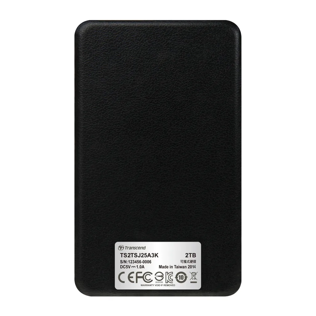 Transcend StoreJet 25A3K 2TB. HDD capacity: 2 TB, HDD size: 2.5". USB version: 3.2 Gen 1 (3.1 Gen 1). Product colour: Black