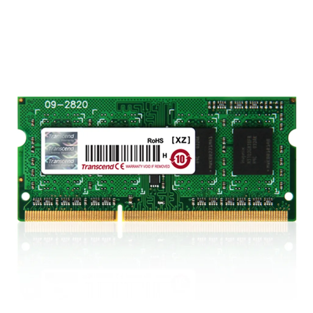 Transcend DDR3-1600 SO-DIMM 4GB. Component for: Laptop, Internal memory: 4 GB, Memory layout (modules x size): 1 x 4 GB, Internal memory type: DDR3, Memory clock speed: 1600 MHz, Memory form factor: 204-pin SO-DIMM, CAS latency: 11, Product colour: Green