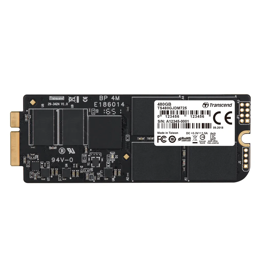 Transcend JetDrive 725 480GB. SSD capacity: 480 GB. USB connector: USB. Read speed: 570 MB/s, Write speed: 460 MB/s. Product colour: Silver